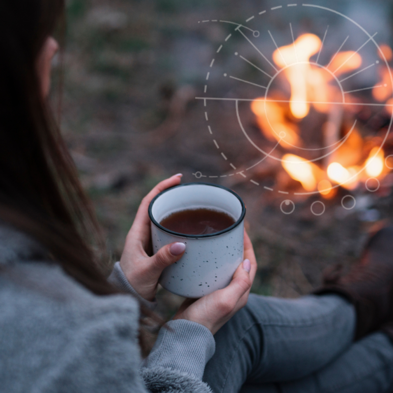We houden gezellige kampvuuravonden en vertellen elkaar verhalen of staren gewoon in het vuur. We verwennen je graag met een zelfgemaakte bessenlikeur of een kruidenthee.